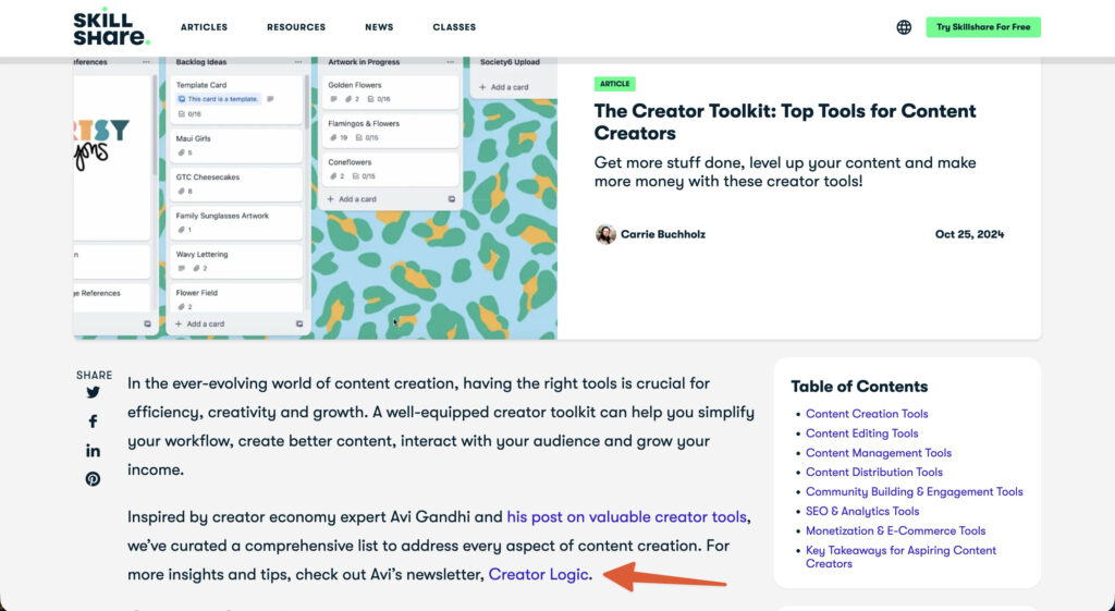 Avi runs a newsletter called Creator Logic, about the business of being a creator. Instead of paying for ad placements, he traded content to get in front of other brands’ audiences.